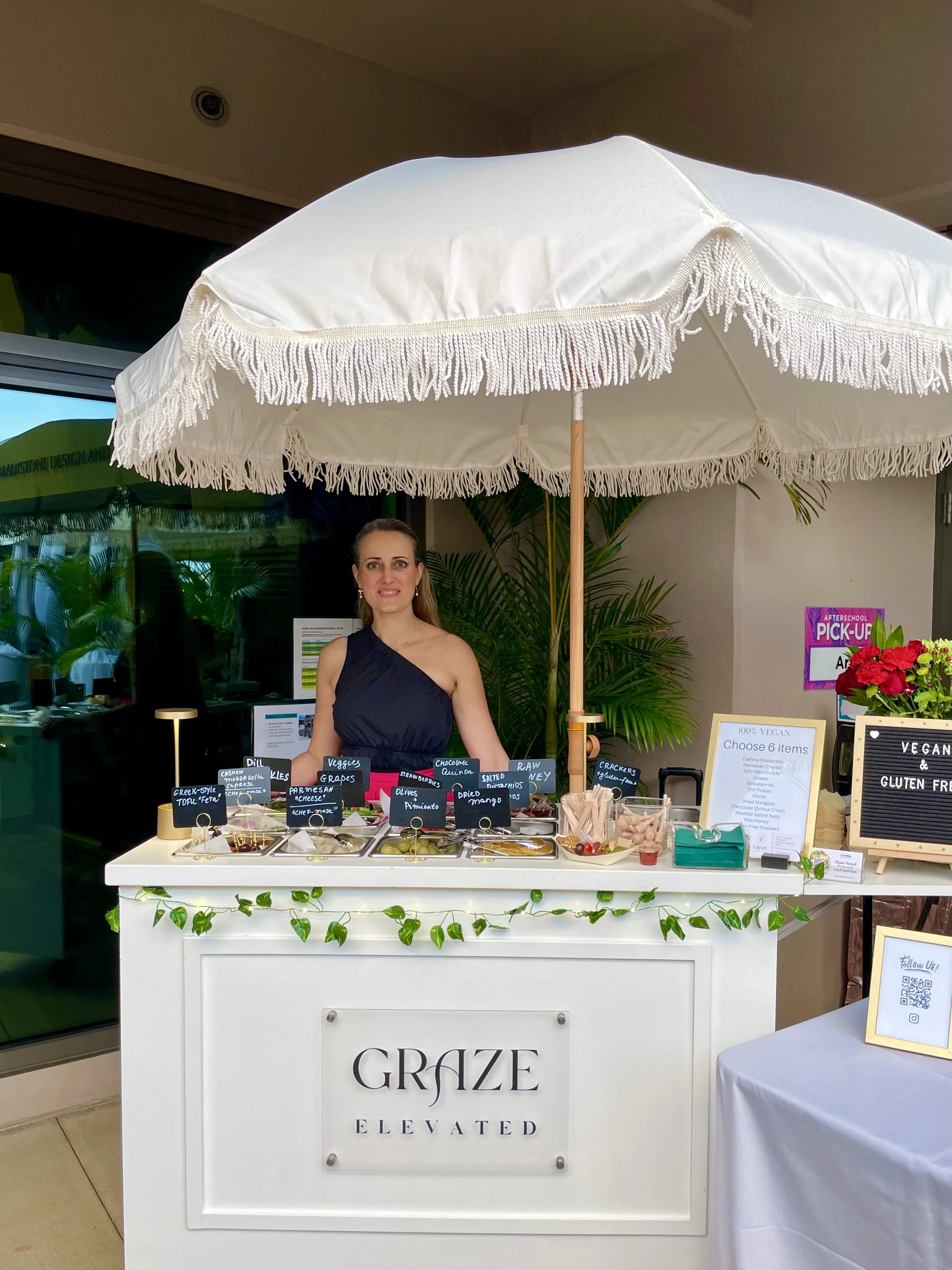 I also run a sister business, Graze Elevated, a fully vegan mobile snack and s’mores cart, a perfect, elegant and healthy centerpiece for your event.