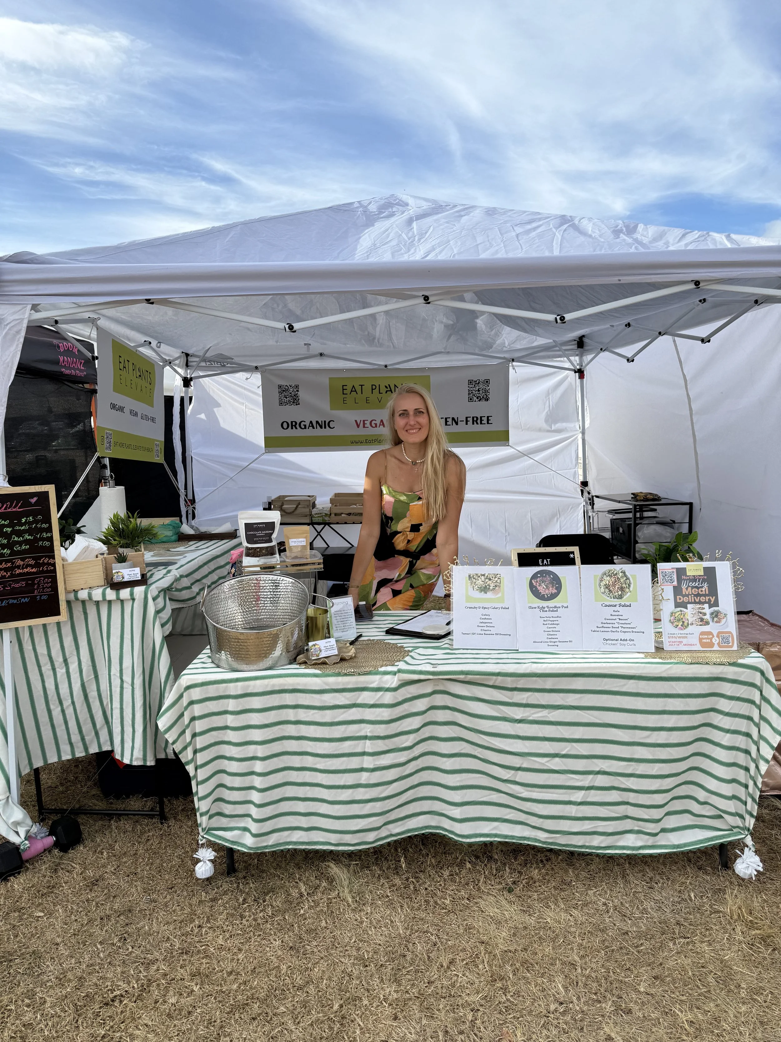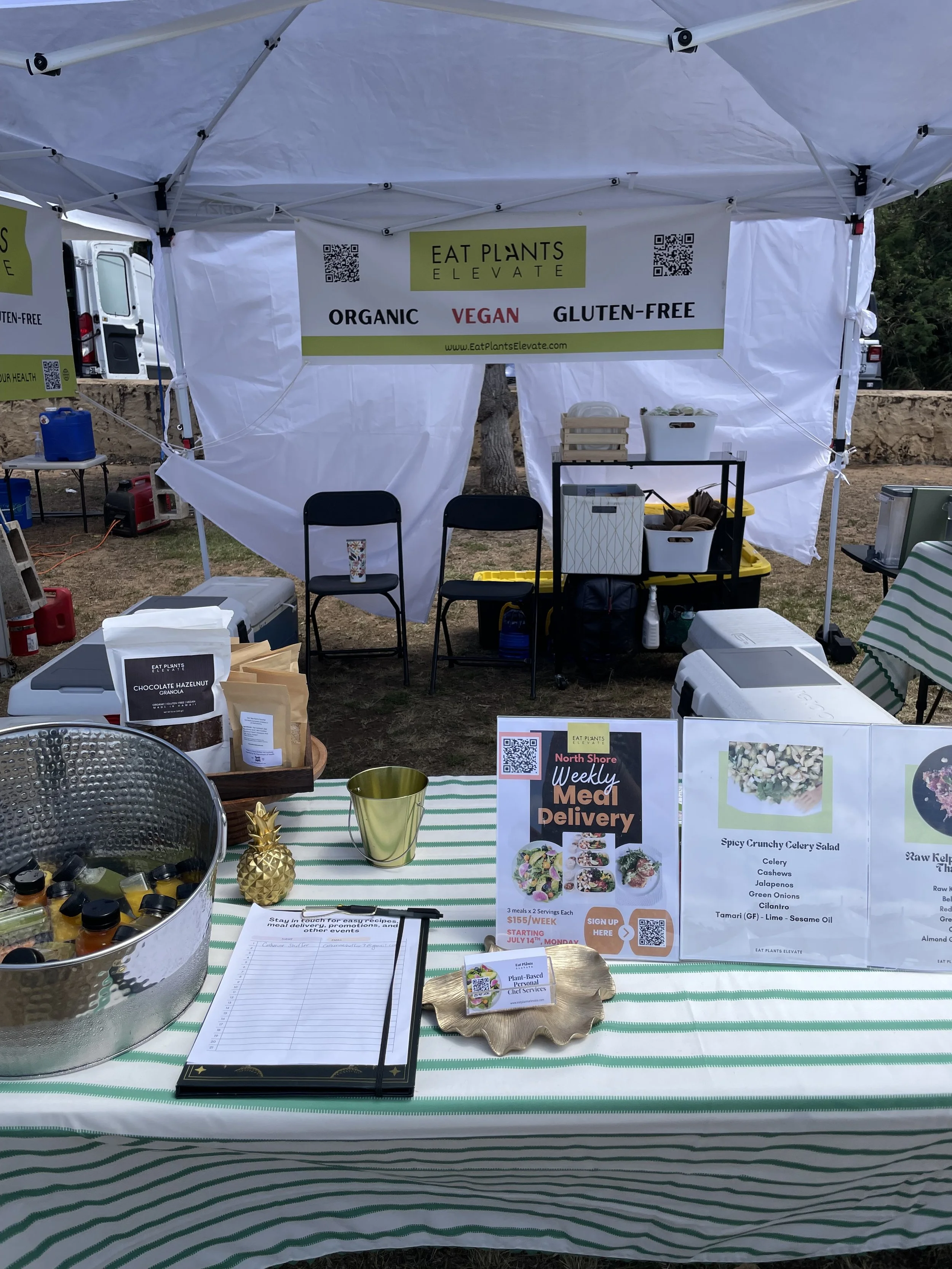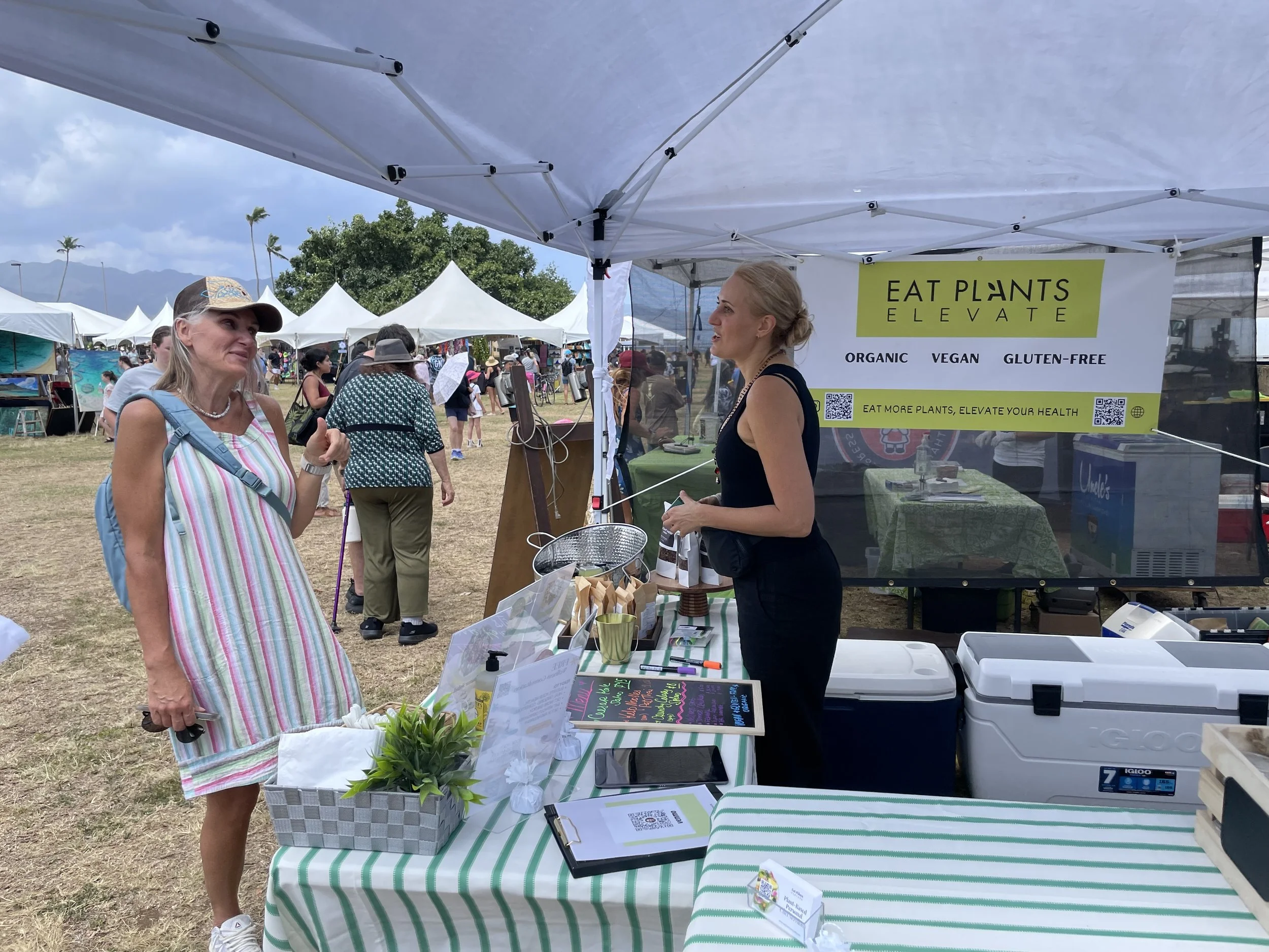 Eat Plants Elevate was at the Haleiwa Arts Festival, serving vegan salads, sweet snacks, fresh juices, and wellness shots.